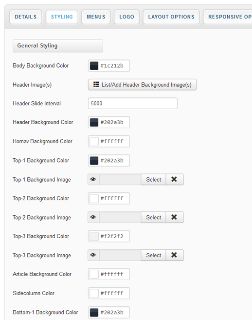Your template parameters can be access directly from your Template Manager giving you access to a host of features including a selection of template styles, some colour choosers to help customise your template headers and links, a number of layout options and easy to use logo settings.